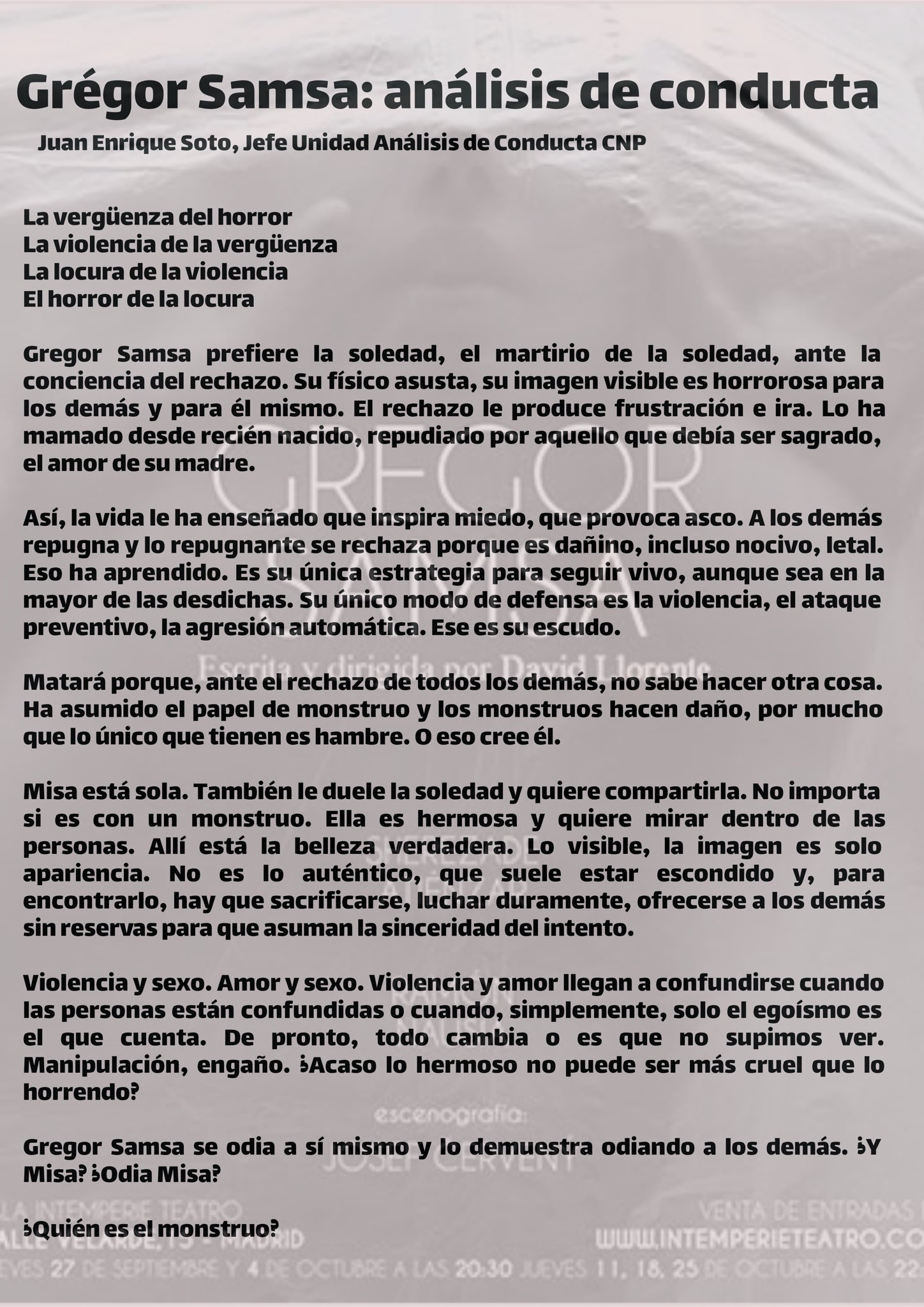 Gregor Samsa: análisis de conducta. Juan Enrique Soto [Imagen].